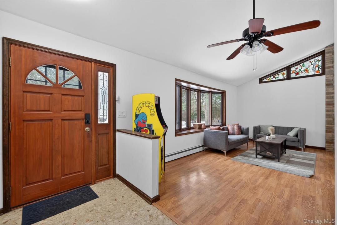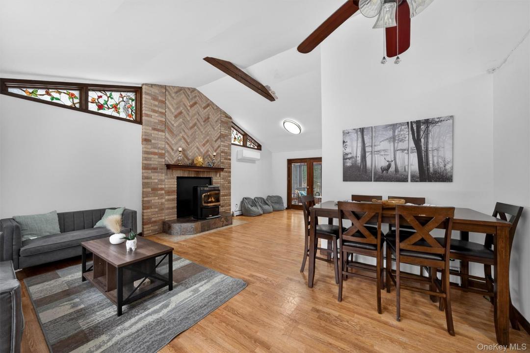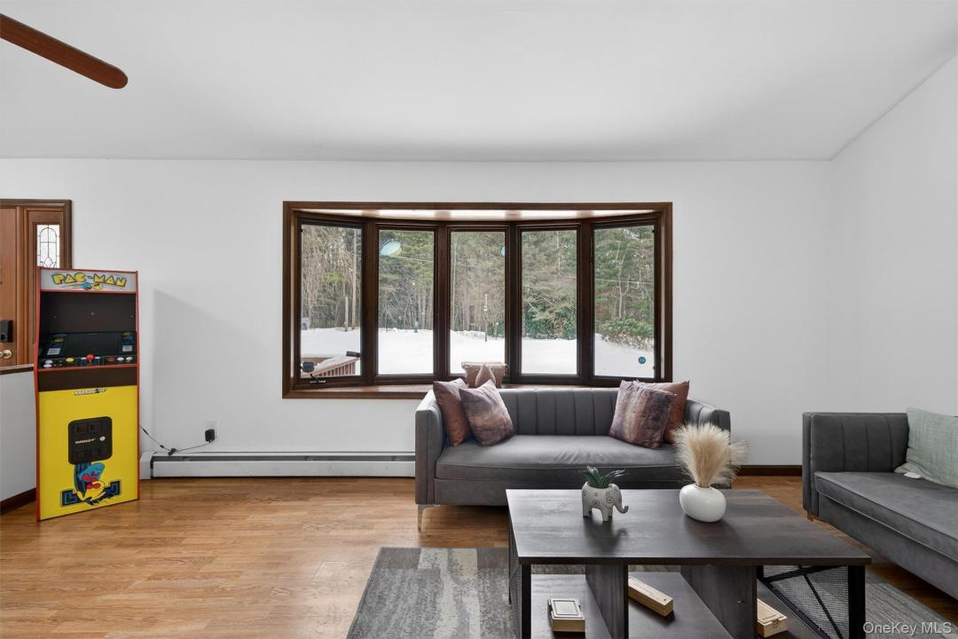 Discover Your Dream Escape: A Cozy Ranch in Sparrowbush, NY! Nestled on a private 2+ acre parcel on a tranquil road, this well-built ranch offers ample space with vaulted ceilings in the open living/dining/kitchen, abundant natural light from large windows, hardwood floors throughout (new carpet in 3 bedrooms), and a cozy fireplace with pellet stove heating the main floor efficiently. Stay cool with four split-unit AC systems. Relax in the heated four-season sunroom off the dining area – ideal for morning coffee. Oversized 2-car attached garage doubles as workshop/storage, protecting vehicles and simplifying errands. Vast basement provides endless potential. Upgrades include both bathrooms with new toilets/sinks, new dishwasher, and a 22-ft round above-ground pool for summer fun. Spacious yard with mature trees ensures privacy and outdoor enjoyment. Just 2 hours from NYC and 10 mins to Manhattan trains – perfect for commuters. Nearby: quaint towns for dining/shopping, Delaware River adventures, Bethel Woods concerts, Kartrite Water Park, Resorts World Casino, skiing at Holiday Mountain/Big Bear, hiking trails, and top farmers markets for idyllic country living! Extras: Ample storage, oil above-ground heating, 2-car attached parking. Schedule your tour today – this gem won’t last!