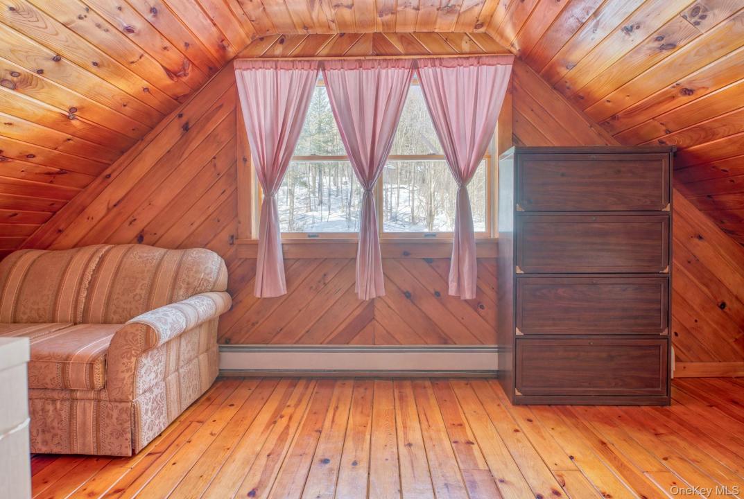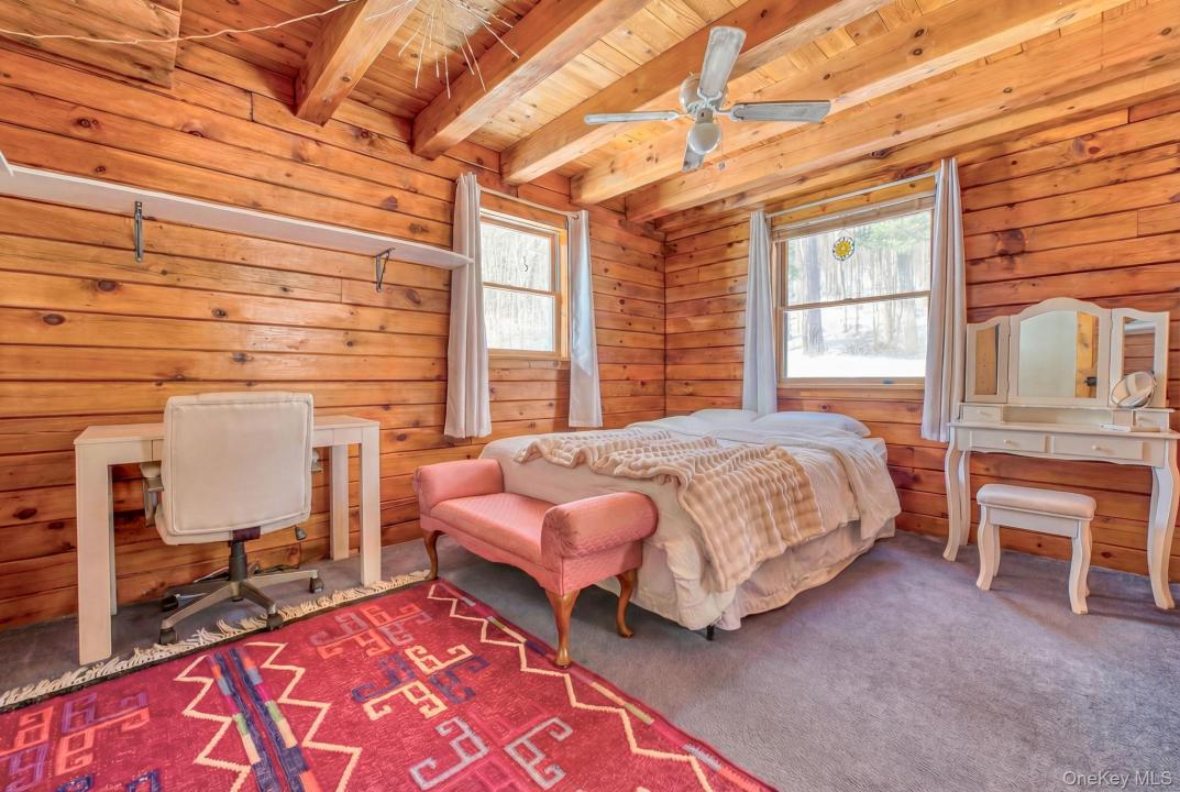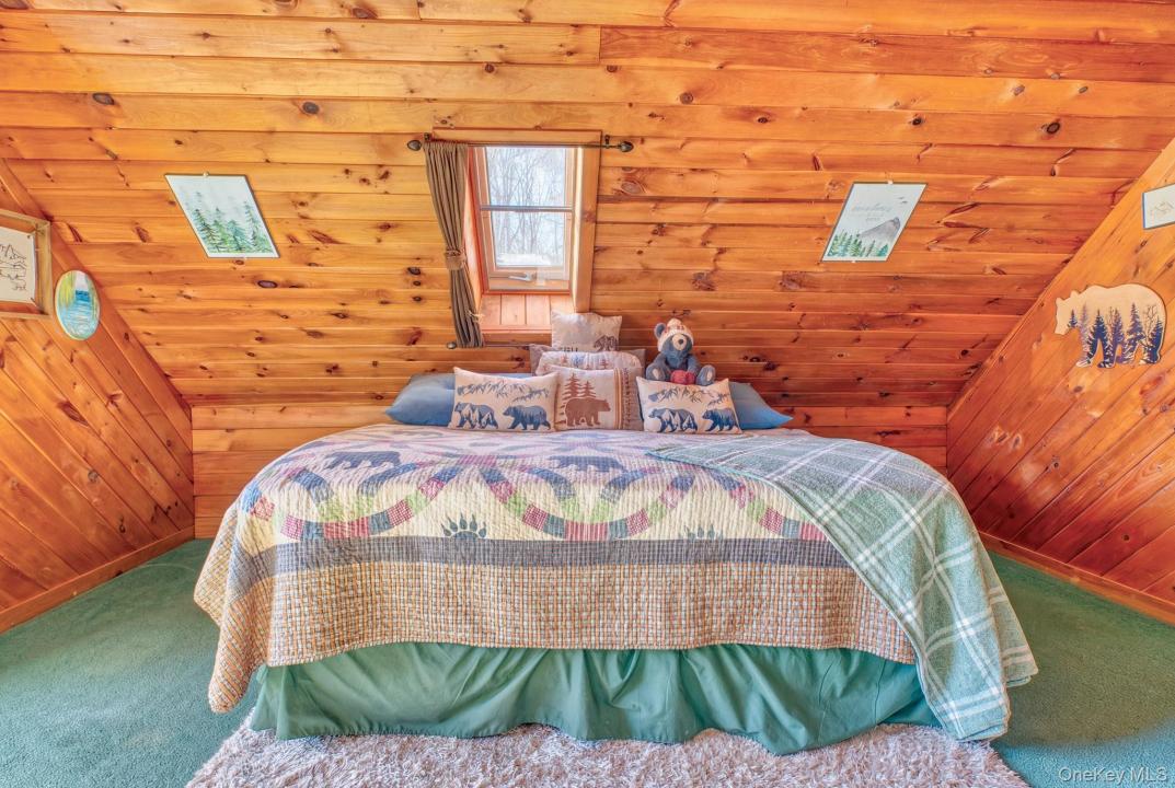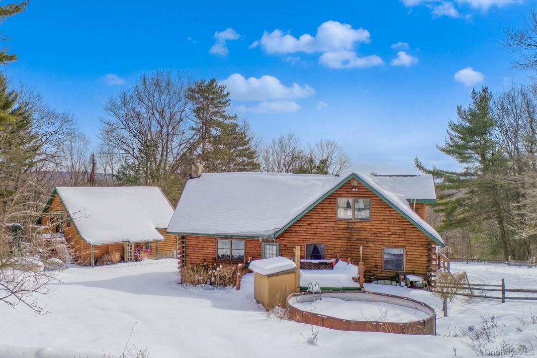 Welcome to 189 Yeagerville Road situated in one of Ulster County's most well kept secret spots in the pristine hill country just north of the Hamlet of Napanoch. This stunning log home on nine acres presents a multitude of possibilities both inside and out. Come up the hill on the well-maintained driveway to see the expansive lawn, surrounding woodlands, home and adjacent, oversized two-car garage with ample space for a workshop and 400 sq. ft. second level loft, perfect for guest overflow, home gym, crafts/hobbies or home office. A third bay with lean- to provides plenty space for equipment, off road vehicles and all manor of outdoor gear. Enter by the steps to the three-season enclosed porch that covers the width of the house. Mature gardens grace the front of the property in growing season. A fully fenced in side yard is perfect for pets and protected garden space. There is ample area for indoor and outdoor entertainment with a large decks to the side in front and on off the back by the above ground pool. An open-concept kitchen/dining area leads to a very large living room in modern log style. There are two bedrooms and a full bath on the main floor as well. The second floor features a loft overlooking the living room, ideal for home office or a variety of uses. Continue to the primary bedroom, full bath and the beautiful full balcony with endless south views. Perfect for morning coffee, afternoon tea or an evening drink. Nestled under the peaked roof this enchanting space provides the perfect place for quiet moments. Acres of woodlands behind the house features numerous trails suitable for walking, hiking or ATV style exploration. A large pellet stove keeps the entire house warm without the use of fossil fuels but a back up system of baseboard oil fired system is in place. 15 minutes down the hill to the charming town of Ellenville with all it offers, including many restaurants, cafes, shops and the prestigious Shadowland Stage regional theater and all services including local farms awaits exploration. This enchanting home awaits its next chapter. Come and see the possibilities of 189 Yeagerville.