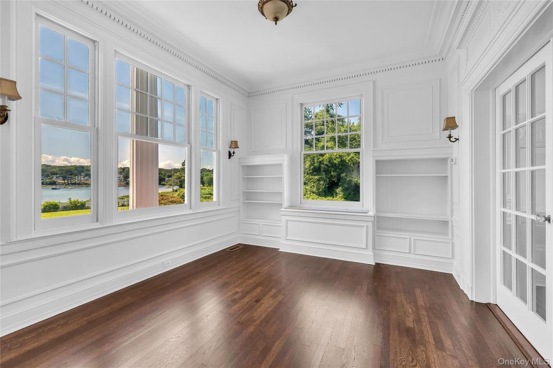 Spectacular restored Georgian Colonial Mansion on 2.6 acres and 400 feet of waterfront! Yes! 400 feet of direct waterfront on Huntington Bay with spectacular views from every room. 7 bedroom, 7 bath, eat-in kitchen, formal living room with large fireplace, and other unique rooms. This 1917 updated home with incredible original details inside and out, and modern amenities including 7 zone central air conditioning throughout. Updated kitchen with fireplace and 7 bathrooms. Master suite with separate his and her bathrooms and closets, and even a waterview from the sunken bathtub! In-ground sprinklers, generator, shower/steam room, refinished wood flooring throughout, updated electrical, updated plumbing, and new gas boiler-hot water heater. High ceilings and unique architectural details throughout. Original brick patios, large Roman in-ground gunite pool. Large 3 car garage with high ceilings and huge 1,000 sq ft room above garage with 12 foot ceilings. Quality fenced in property with new driveway. Taxes are only $48,721.18