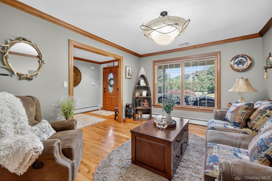 Welcome to this beautifully landscaped, custom-crafted Cape Cod home nestled on 5.4 private acres with a two-car garage. Offering 3,666 square feet across two levels plus an additional 1,592 square feet in a fully finished custom basement. This home provides exceptional space and timeless charm. The main home features three spacious bedrooms and three full bathrooms, thoughtfully designed for comfort and convenience, and all are conveniently located on the first floor. The spacious living room, with a large wood burning fireplace, offers comfortable surroundings. French doors lead to a resort style living with a sparkling salt water inground pool area with a fire and horseshoe pit surrounded by outdoor living experience of beauty and privacy. The kitchen includes granite countertops and stainless-steel appliances and offers an eating area around the counter island. A sun filled dining room offers a formal setting. A bonus four season room has high performance windows and a comforting Lopi wood burning wood stove. A family room is located on the first floor also. On the upper level, additional living includes a full bathroom, living room, office, or study. An additional room may be an exercise room, playroom, library, and more of your choosing. Stepping down to the custom finished basement is done in 1 x 12 horizontal shiplap, metal corrugated ceiling, and a custom bar. A relaxing family room, and a game room is perfect for recreation or extended relaxation space. Enjoy a seamless blend of indoor and outdoor living with expansive windows, scenic property views, and inviting gathering spaces. For the hobbyist, equestrian, or collector, the property includes a 24 x 35 separate finished barn with rubber mat working stalls that can accommodate two horses. There is a huge hayloft area and has convenient front and rear sliding exterior doors. The barn also includes ceiling fans, full sub electrical panel (100 amp), frost free running water and dust proof lighting throughout the interior and exterior. There is also an 8 kw Generac auto start generator with transfer switch when needed. Farm animals such as donkeys, mules, pigs, goats, and more can be part of the fenced-in property. The barn has ample storage, the garage can be used for collectible cars, or workshop needs allowing you to tailor the space to your lifestyle. Offering beauty, privacy, and functional luxury, this property is a rare opportunity to truly own a remarkable home and acreage retreat. Warwick offers hiking trails, wineries, ski areas, orchards, restaurants and shopping in the village. New York City is located sixty miles away. Also available is bus servicee to Manhattan via NJ Transit. A location that is ideal for any commuter or weekender.