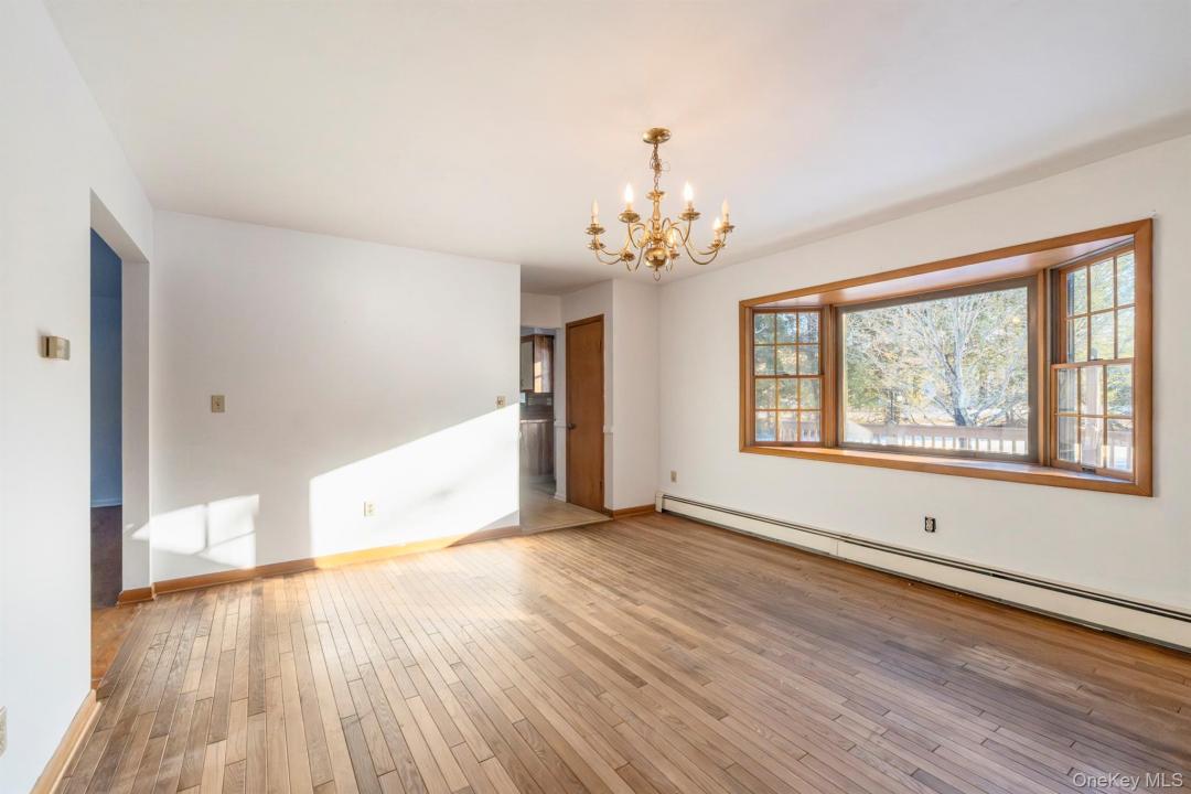 Welcome to 609 New Paltz Road in Highland a solid and spacious 3-bedroom, 1-bath ranch set on .61 of an acre in a highly convenient location. This well-built home offers a functional layout featuring a sun-filled living room with a cozy fireplace, a formal dining room perfect for gatherings, and a generously sized eat-in kitchen with ample space for everyday living. A separate laundry area adds convenience, and the attached two-car garage provides easy access and additional storage. The full, unfinished walkout basement presents incredible potential to create additional living space, a home office, gym, or recreation area the possibilities are endless. Commuters will appreciate the proximity to the NYS Thruway, the Mid-Hudson Bridge, and Metro-North, making travel simple and efficient. While the home does need cosmetic updates, it offers strong bones and tremendous opportunity to build equity with your personal touches. Being sold as-is, this is a wonderful opportunity for buyers looking to customize a home in a prime location.